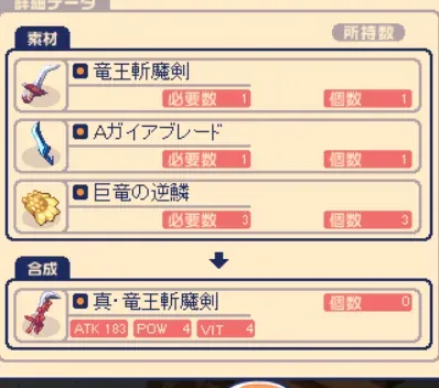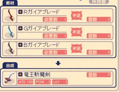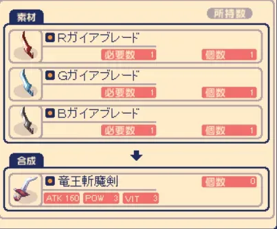 とりあえず、作った赤緑黒のガイアブレードを合成して竜王斬魔剣に。