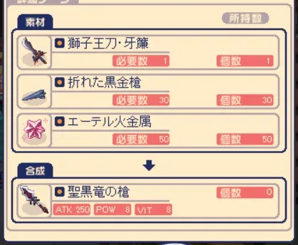 これでようやく目的の聖黒竜の槍が完成。