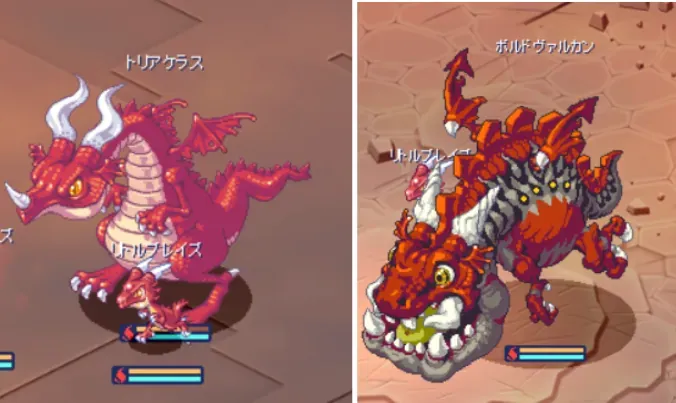 ここでは、リュウは一番小さい雑魚敵で、竜が中ボス、龍がヴァルカン系のボスとして表現する。