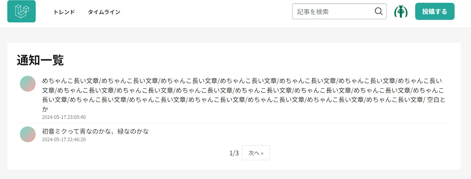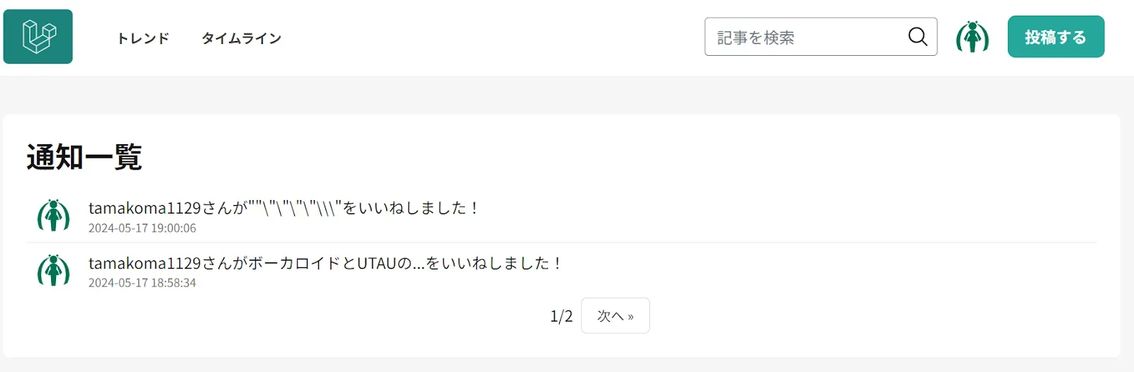 本当はQiitaやNoteみたいな非同期のかっこいい通知閲覧画面にしたいんだけど、まだAPIの扱いになれていないので通知専用の画面を作りそこで閲覧する方式にする。