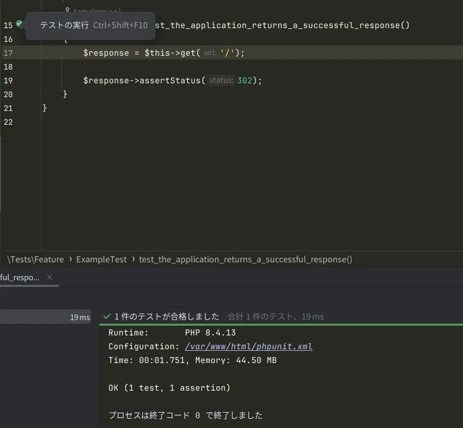 しかも、DockerでPHPを動かしているんだけど、そのDocker内に入ってテストを実行してくれる優れもの。