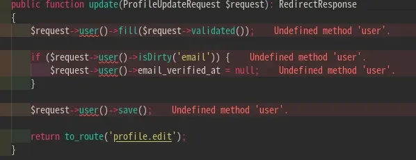 解決法を調べても「Undefinedエラーの検出を無効にしましょう!」みたいな根本的な解決ではない解決策しか出なかったり、IDE Helper周りをいじくり回しても解決しなかったり。
