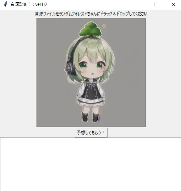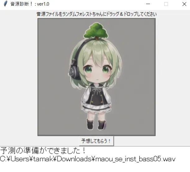 ①まず、起動したらランダムフォレストちゃんに音源を食べさせます。
