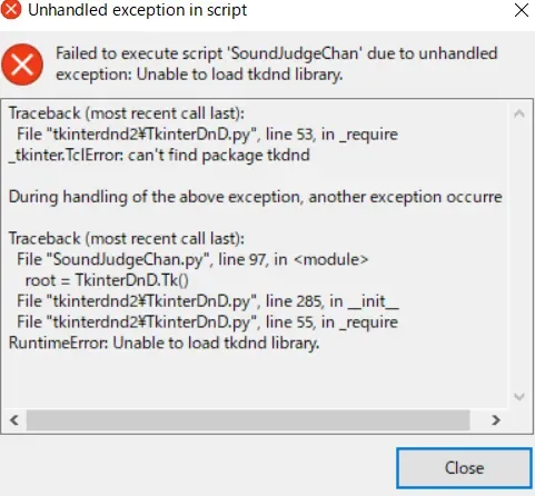 「RuntimeError: Unable to load tkdnd library.」っていうエラーが。